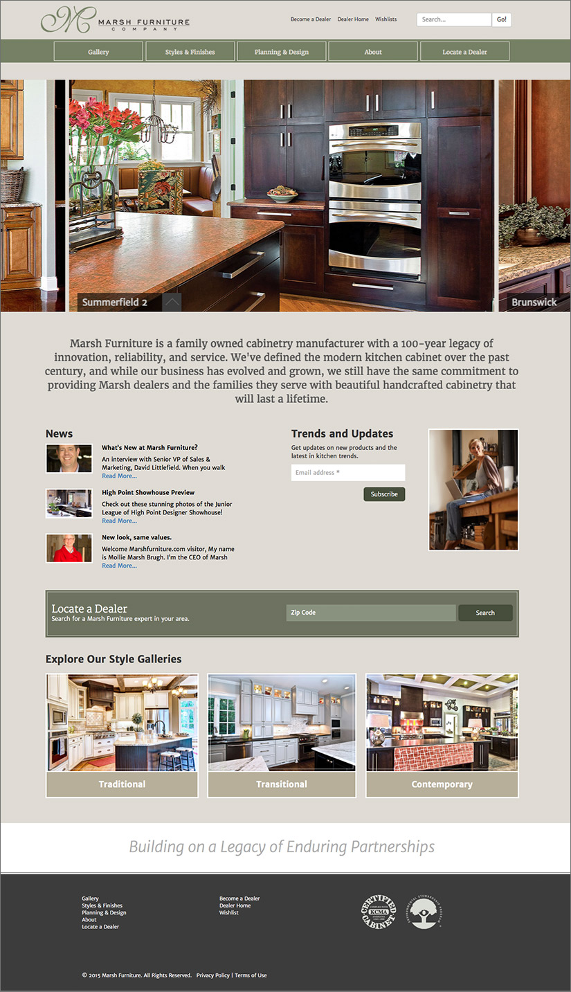 Marsh Furniture is a family-owned company that has been making excellent kitchen cabinetry for over 100 years. While it would have been easy to coast, leadership set the course to revitalize the brand and the way they did business. A new CEO brought us in to assist with a major overhaul.